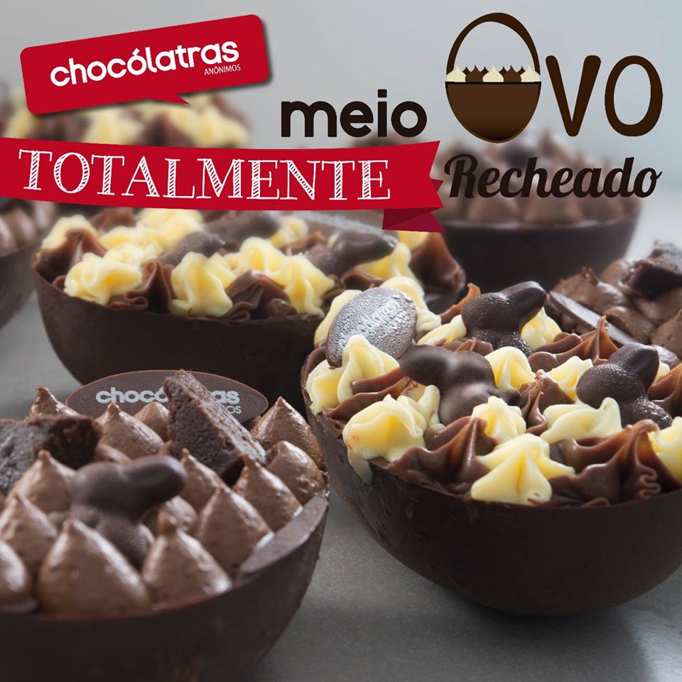 Está chegando o feriado preferido de quem ama chocolate, e o melhor lugar para garantir seu ninho de Páscoa é nas lojas Chocólatras Anônimos, que estão cheias de novidades. Além dos já tradicionais Ovos Recheados – que neste ano vêm nos sabores Tricolor e Brigbrownie -, a rede aposta em novas embalagens para ovos, coelhos e cenourinhas de chocolate. Outra surpresa é a Colomba Pascal, coberta com amêndoas e recheada com muitas gotas de chocolate.